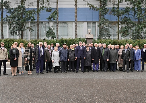 Торжественный день открывали слова памяти и возложение цветов к бюсту великого конструктора, талантливого организатора, создателя автономных систем управления, основателя предприятия академика Н.А. Пилюгина.